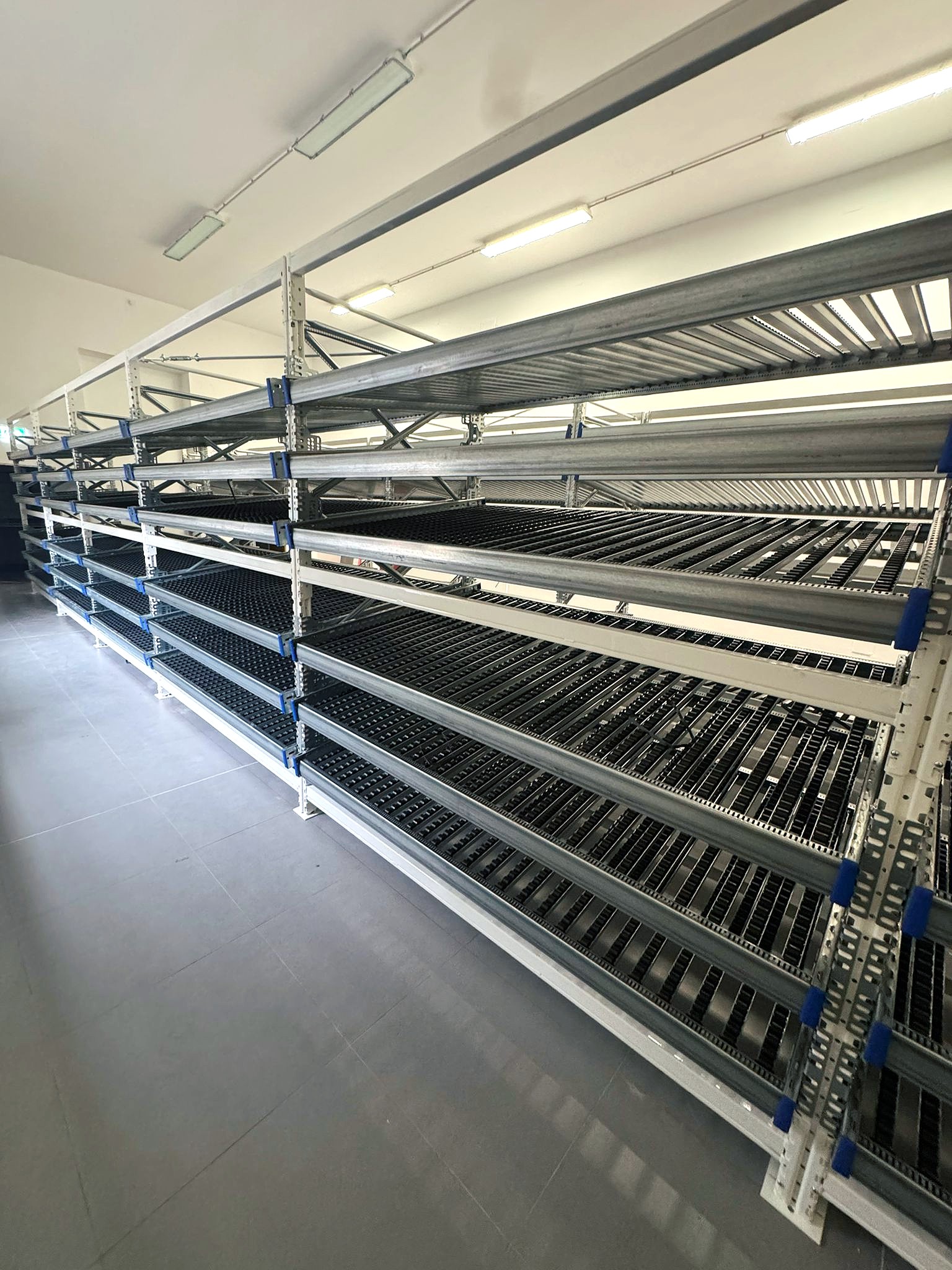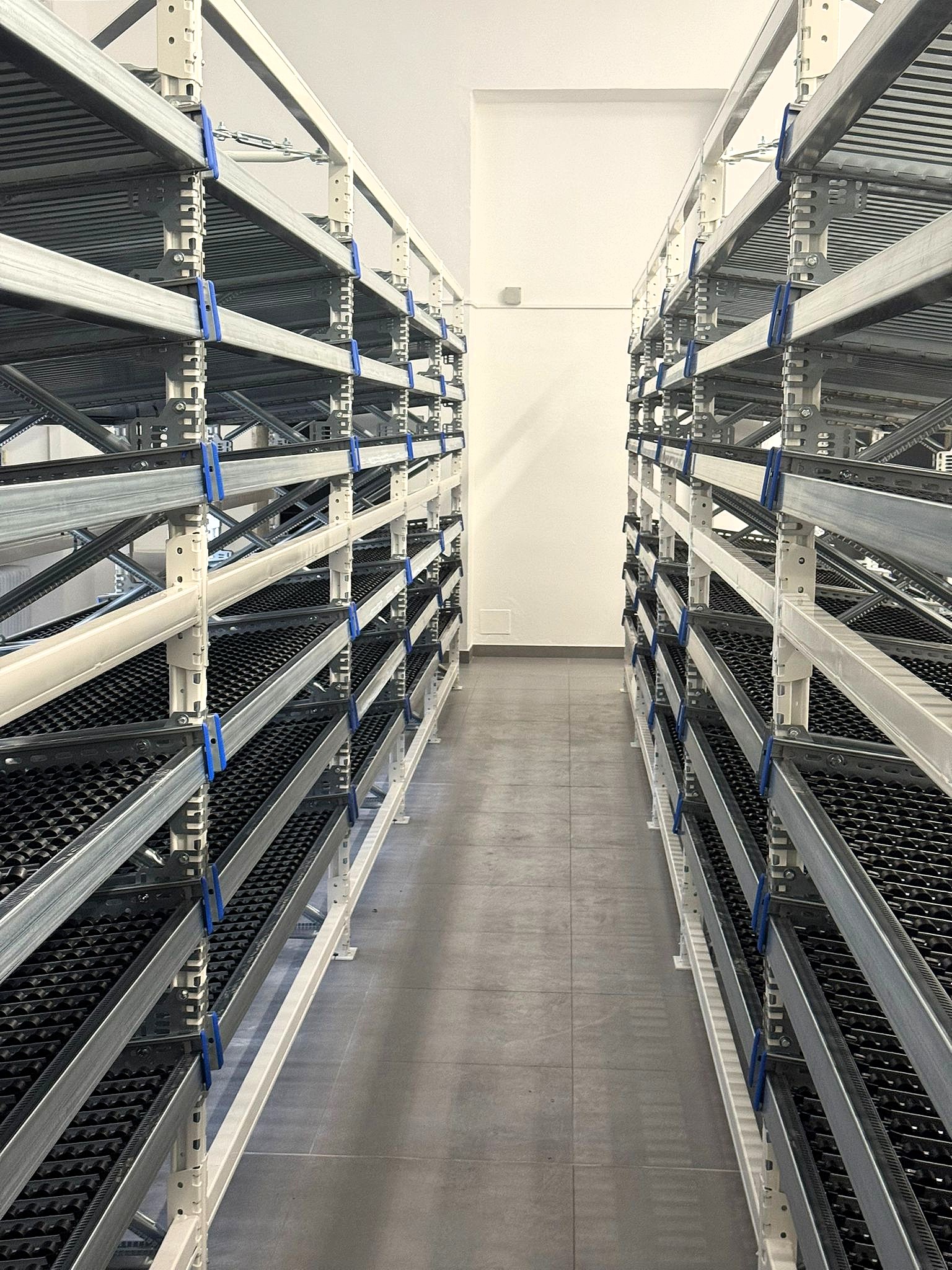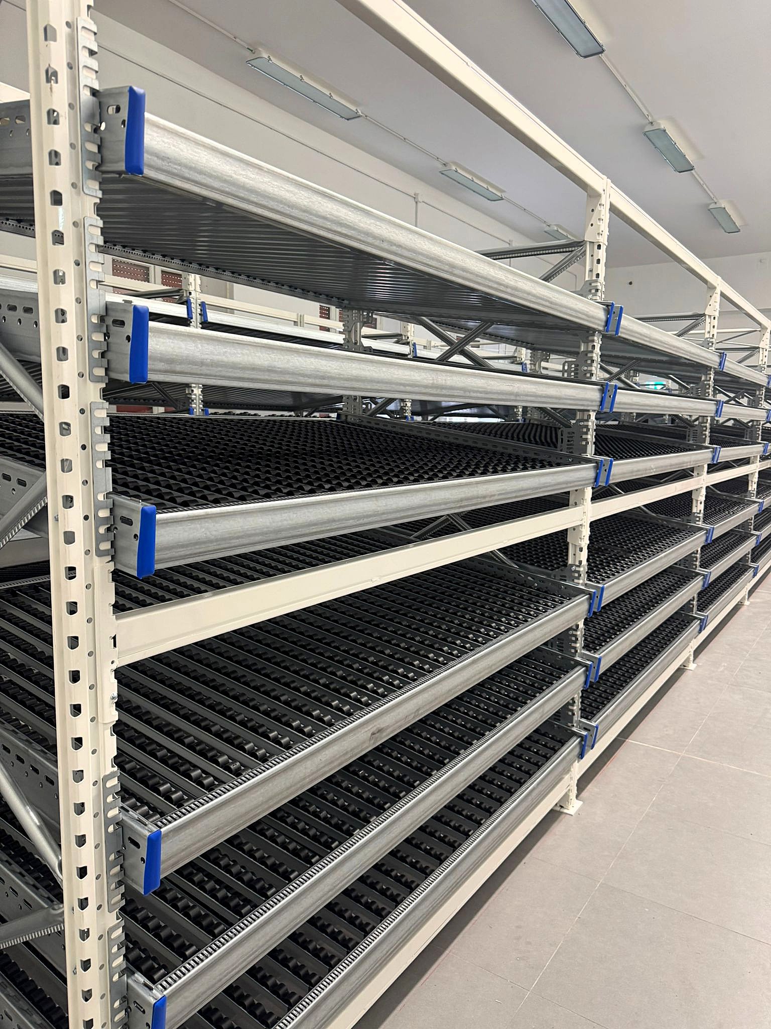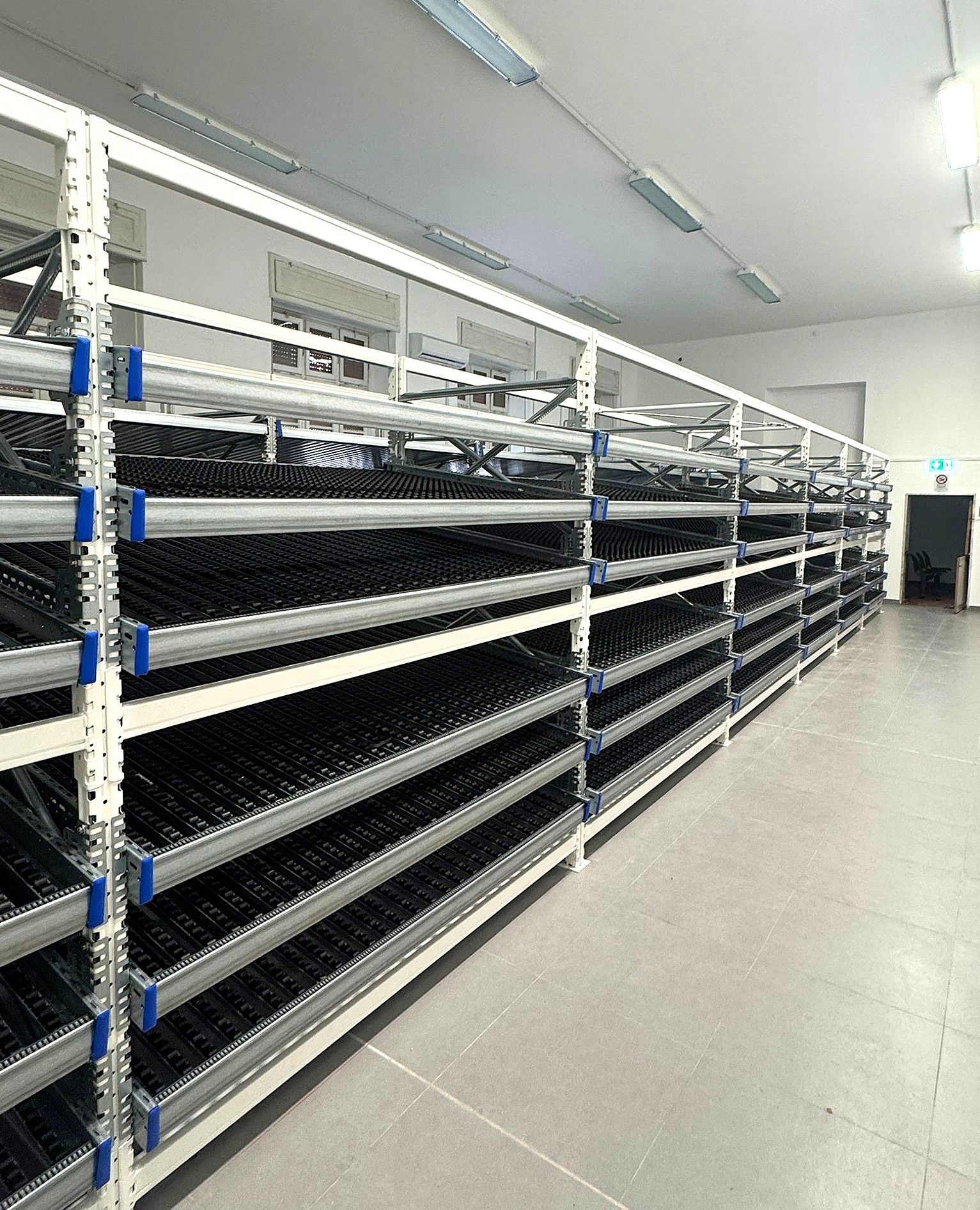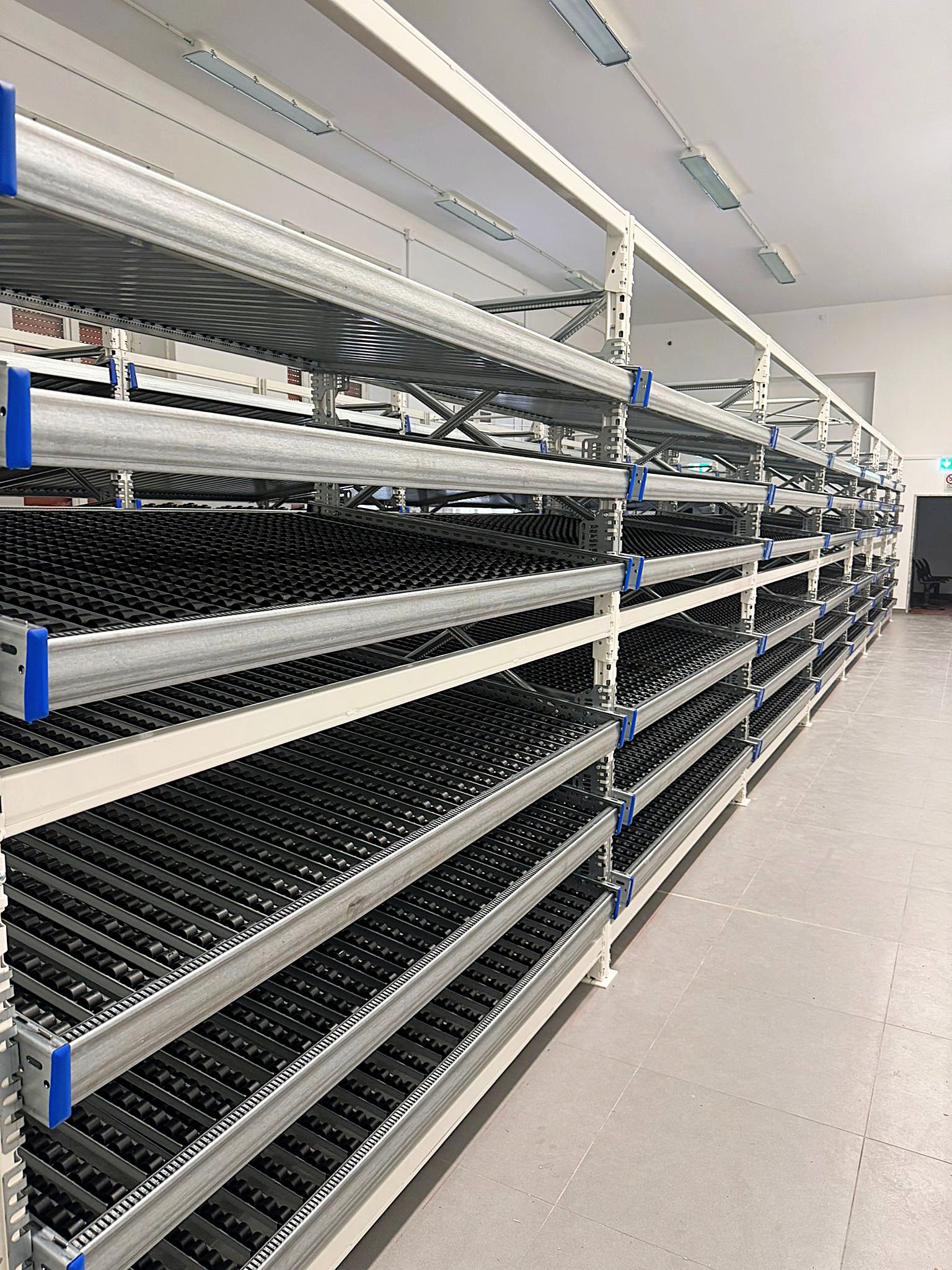 Le Rulliere-Picking sono sistemi costituiti da una serie di rulli su cui scorrono i prodotti, utilizzate in magazzino e centri di distribuzione per movimentare e prelevare merce (Picking) in modo efficiente. Sono integrate nelle scaffalature, tipicamente inclinate, per sfruttare la gravità, facilitando l’accumulo e il prelievo veloce dei prodotti, per ottimizzare i flussi e ridurre lo spostamenti degli operatori.