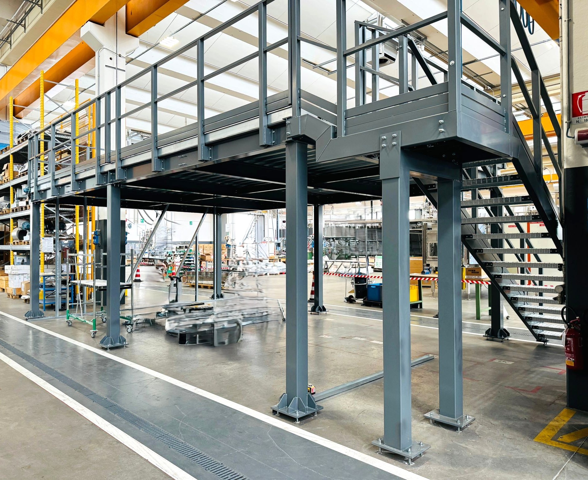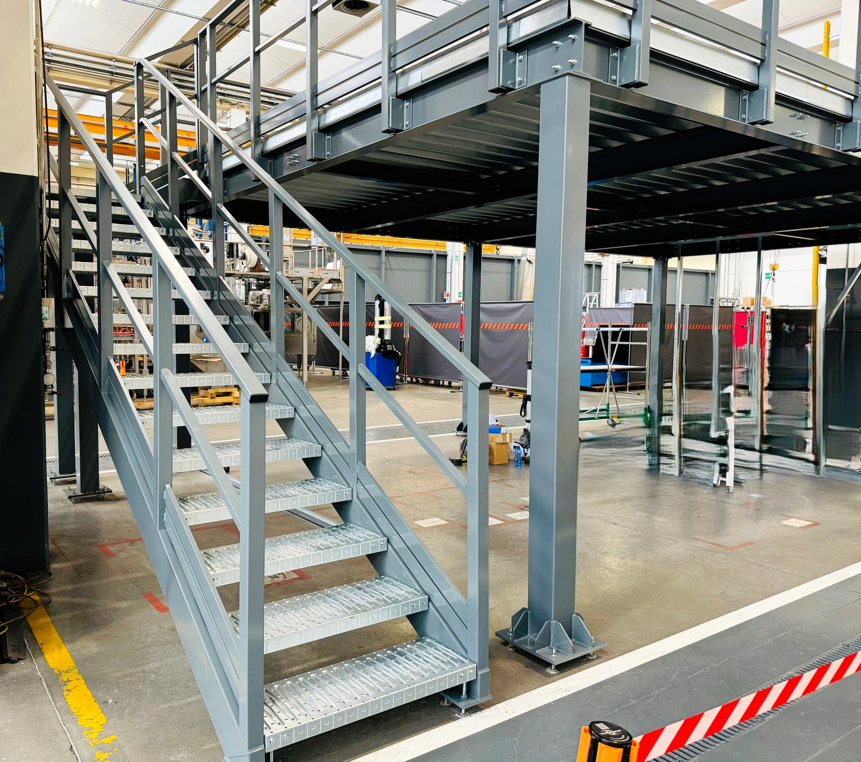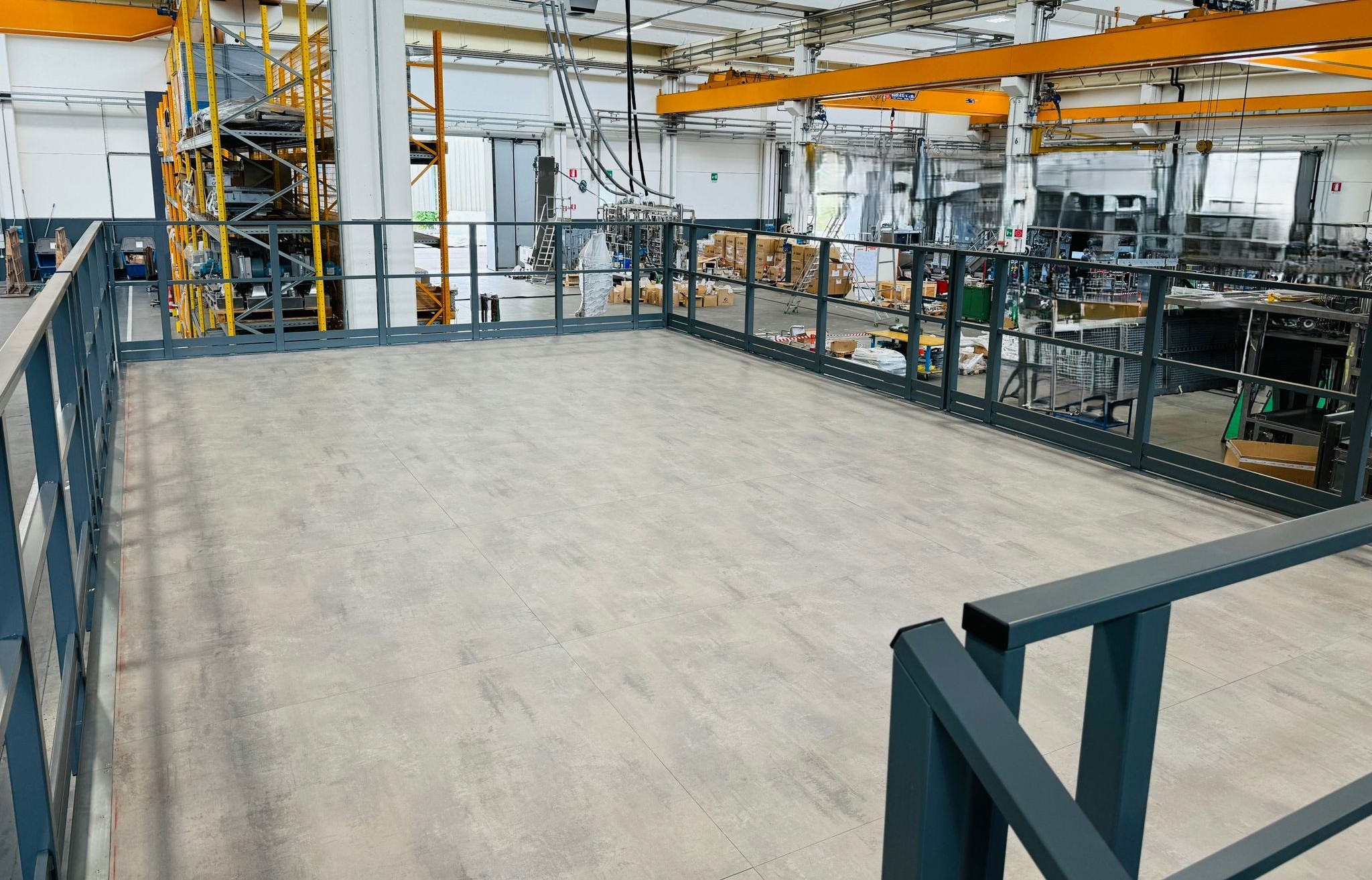 Il soppalco REGGIANI viene dotato di ringhiere di protezione, cancelli scorrevoli/basculanti, scale di accesso e di sicurezza, parapetti e pavimentazione, tutto in base alle normative vigenti.